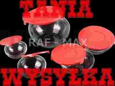 Szklane miski 5 sztuk plus 5 plastikowych pokrywek