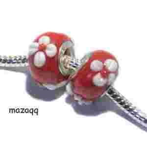 Szklany koralik czerwony kwiaty, wyprzedaż