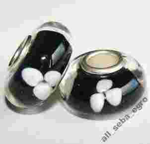 Szklany koralik modulowy CZARNY KWIATOWY nr74