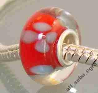 Szklany koralik modulowy CZERWONY KWIATOWY nr111