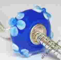 Szklany koralik modulowy NIEBIESKI KWIATOWY nr436