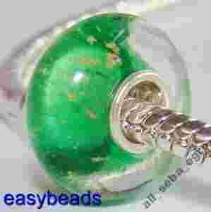 Szklany Koralik modulowy SREBRO ZIELONY GOLD nr81