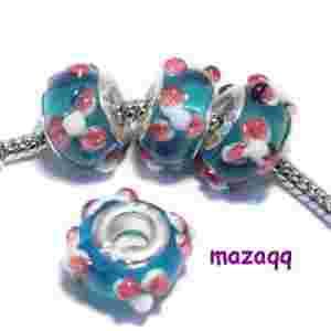 Szklany koralik niebieski kwiaty 2 sztuki