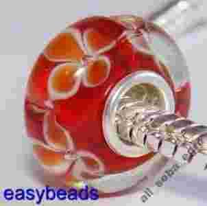 Szklany Koralik SREBRNY 925 CZERWONY RED nr92