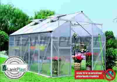 Szklarnie typu LanitGarden Plugin 8´ należą do kategorii HOBBY. Płyty poliwęglanowe wsuwane są po obwodzie do profili aluminiowych. Chodzi o unikalne rozwiązanie zwiększające całkowitą wytrzymałość i stateczność całej szklarni. Jednocześnie wzrosła także odporność szklarni na obciążenie porywistym wiatrem i śniegiem. Szklarnia wyprodukowana jest z anodowanych profili aluminiowych i dostarczana jest wyłącznie z panelami wykonanymi z termoizolacyjnych podwójnych płyt poliwęglanu komorowego o grubości 4 mm.