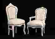 Stylowe i efektowne krzesełko o nowoczesnym designu .Dekoracyjny wygląd to przede wszystkim zasługa jego twórcy ponieważ mebel został wykonany tzw.techniką ,, hand made,, czyli ,ze jest to robota ręczna której wykonawca z wielkim kunsztem i finezją wiernie odwzorował elementy charakterystyczne dla epoki baroku. Zgrabny profil oraz solidna i stabilna konstrukcja fotela wykonana została z drewna bukowego pokrytego powłoką białą lakierowaną . Siedzisko obszerne i wygodne na sprężynach z dodatkiem tworzywa piankowego