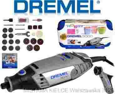 Dremel 3000, zestaw 25 sztuk akcesorii (opis powyżej),płytę DVD z przykładami kreatywnych zastosowań narzędzia, pojemne i wytrzymałe etuii do przechowywania narzędzia i osprzętu, instrukcję w języku polskim, kartę gwarancyjną oraz dokument zakupu (FAKTURA VAT), bez którego gwarancja jest nieważna !!!