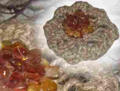 sznurek-broszka sznurkowo bursztynowa