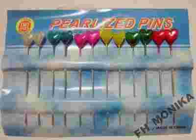 Szpilki kolorowe perłowe serduszka - 55mm 12szt.