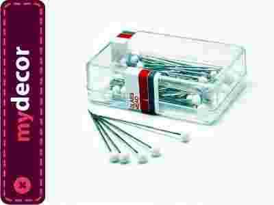 Szpilki krawieckie z białą szklaną główką 44 mm