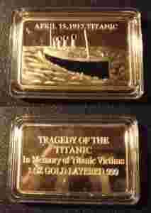 Do sprzedania pozłacana sztabka kolekcjonerska upamiętniająca RMS Titanic... piękna i gustowna, przechowywana w kapslu !Wygląd sztabki / numizmatu i jego stan zachowania widoczny na załączonych zdjęciach... Nie mam pojęcia o wartości czy oryginalności tej sztabki, dlatego ocenę i decyzję o zakupie pozostawiam Kupującemu nie akceptując zwrotu - widzisz, czytasz, a więc wiesz co świadomie kupujesz !