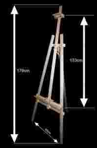 Funkcjonalna i solidna sztaluga trójnożna o wysokości 176cm !!! Wykonana z najwyższej klasy litego drewna jodłowego poddanego dokładnemu i nowoczesnemu procesowi obróbki jakim jest heblowanie, frezowanie i szlifowanie!!! Ruchoma półeczka dolna i górny chwytak umożliwiają regulację wysokości podobrazia lub obrazu z ramą oraz pewne i stabilne ich trzymanie. Dzięki regulacji ruchomej trzeciej nogi możliwa jest zmiana kąta padania światła oraz dostosowanie do osób malujących różnego wzrostu. Sztalugę tę bardzo łatwo można złożyć co jest praktyczne przy przechowywaniu i transporcie,