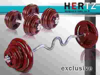 HERTZ Exclusive Wysokiej klasy zestaw obciążeń i gryfów o łącznej wadze 48 kg.