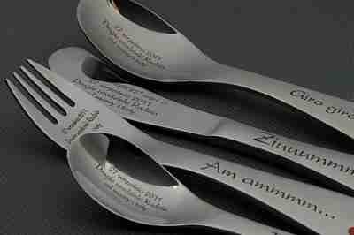 Grawerujemy na ostrzu noża, w czaszy łyżki i widelcu.
