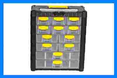 Posiada 6 poziomów szufladek (w sumie 12 wysuwanych – różnej wielkości – pojemników: 3 małe, 4 średnie, 2 duże) , a także dodatkową – otwieraną od góry komorę. Dzięki tak dużej ilości przegródek, w organizerze można uporządkować narzędzia lub drobiazgi zarówno w domu, jak i w warsztacie, magazynie, sklepie lub innym miejscu.