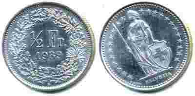 Szwajcaria 1/2 Franka 1989r.