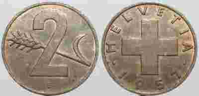 SZWAJCARIA - 2 RAPPEN 1957 r MONETA NR 4