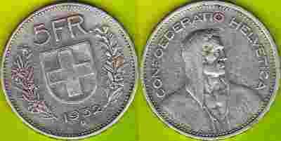 SZWAJCARIA 5 Franc 1932 r. Ag