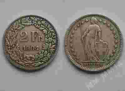 SZWAJCARIA (HELVETIA) 2 FRANK 1904 SREBRO