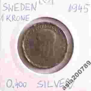 SZWECJA 1945 1 KORONA - SREBRO !!!