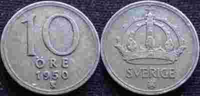 SZWECJA 1950 rok, 10 ORE - srebro