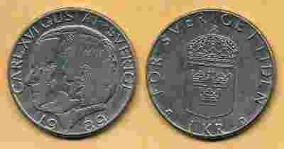 Szwecja 1 Korona - 1989r ... Monety