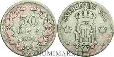 Szwecja, 50 ore, 1907 rok, EB, Ag
