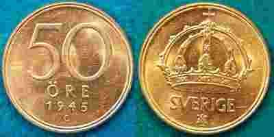 Szwecja 50 ore 1945 Ag