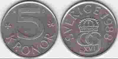 SZWECJA - 5 koron z 1988 roku. 5K/SW.