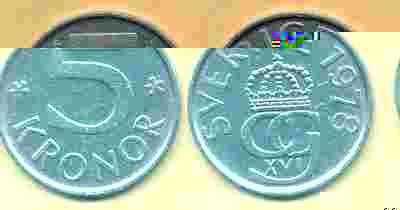 Szwecja 5 Kronor - 1978r ... Monety