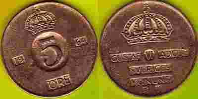 Szwecja 5 Ore 1964 r.