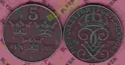 SZWECJA /KM-812/ 5 ORE 1949 r.Iron B.Rzadkie