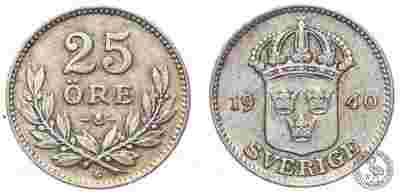 Szwecja - moneta - 25 Oere 1940 - Srebro