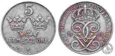 Szwecja - moneta - 5 Oere 1942 - ŻELAZO