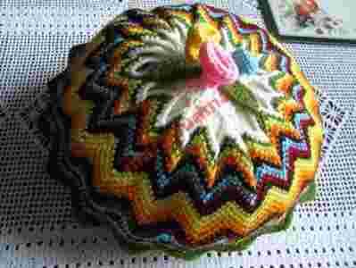 Szydełkowa kolorowa okrągła poduszka