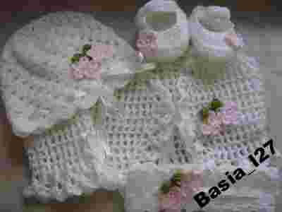 Na tej aukcji przyjmuję zamówienia na śliczne KOMPLECIKI bolerko - buciki - czapeczka - opaska robione na szydełku z miękkiej włóczki.