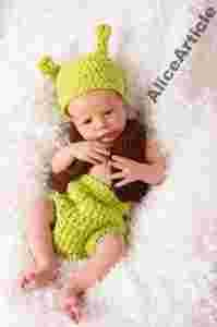 Szydełkowe ubranko MAŁY SHREK unikat! 0-3 mieś