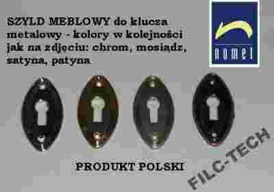 Nowe solidnie wykonane szyldy meblowe przez renomowanego polskiego producenta fabrykę NOMET Sp.z o.o. w Toruniu. Mocowanie: każdy szyld ma dwa malutkie otwory na wkręty do drewna (patrz zdjęcie)- szyld można ewentualnie zawsze przymocować na dowolnym kleju. Szyldy wykończeniowe na standardowe klucze do mebli. Cena na aukcji za 1szt. szyldu- proszę w mailu zaznaczyć jaki kolor Państwa interesuje.