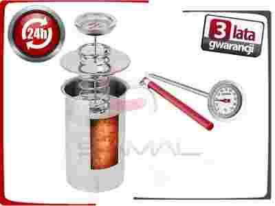 Na środku wieczka znajduje się gniazdo z otworem umożliwiającym bezpośredni pomiar temperatury wsadu mięsnego. Służy do tego termometr z sondą, który nie jest elementem zestawu.