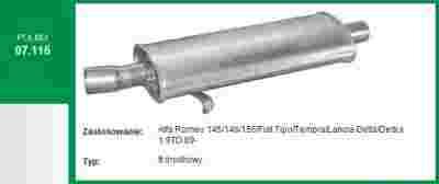 ALFA ROMEO 155 (167) 1.9 TD (167.A3) (90 KM) Tłumik środkowy Tempra Tipo 1993.04->1997.12