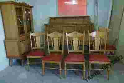 komoda , witryna , stół i sześć krzeseł .
