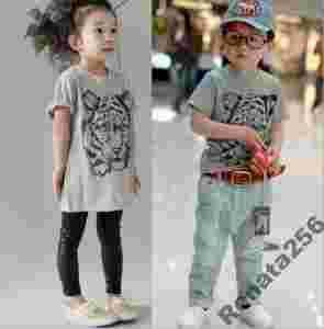 T-SHIRT BLUZKA LATO TYGRYS SZARY R.110