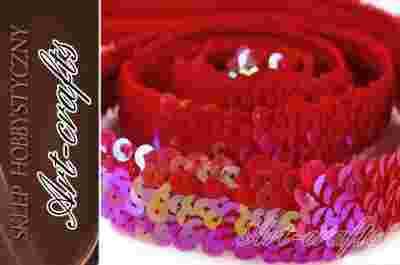TAŚMA ELASTYCZNA CEKINOWA 30MM- CZERWONA MIENIĄCA
