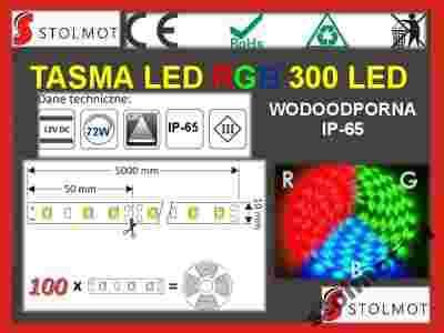 TAŚMA LED SMD 5050 RGB 5M 300 DIOD WODOODPORNA
