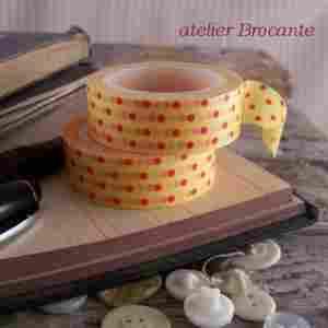 :: Taśma samoprzylepna ŻÓŁTA W CZERWONE KROPKI :: Piękna taśma dekoracyjna w kropki. . Taśma samoprzylepna,papierowa, transparentna, na gładkich powierzchniach można ją wielokrotnie odklejać i przyklejać . Idealna do scrapbookingu, ręcznego wykonywania kartek, niepowtarzalnego pakowania prezentów. Świetna do wszelkich domowych , ekspresowych dekoracji ! Można ją wykorzystać na 100 sposobów !! Wymiary : szerokość 15 mm długość 10m Cena dotyczy jednej szpulki.