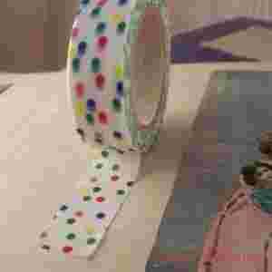 :: Taśma samoprzylepna, dekoracyjna - BIAŁA W WIELOKOLOROWE KROPKI :: Piękna taśma dekoracyjna - biała w wielokolorowe kropki . Taśma samoprzylepna,papierowa, transparentna, na gładkich powierzchniach można ją wielokrotnie odklejać i przyklejać . Idealna do scrapbookingu, ręcznego wykonywania kartek, niepowtarzalnego pakowania prezentów. Świetna do wszelkich domowych , ekspresowych dekoracji ! Można ją wykorzystać na 100 sposobów !! Wymiary : szerokość 15 mm długość 10m Cena dotyczy jednej szpulki.