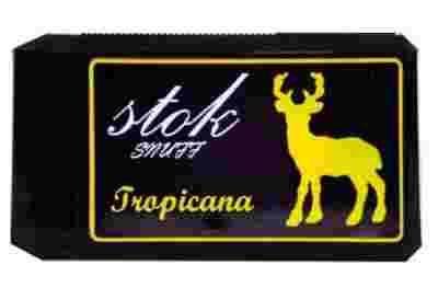 TABAKA STOK SNUFF TROPICANA Tabaka średnio mielona, duża wilgotność i intensywny aromat owoców tropikalnych praktyczna plastkowa tabakierka z dozownikiem, pozwala na dawkowanie z dużą precyzją okreslonej dawki tabaki.
