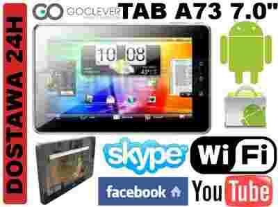 GoClever TAB A73 to uniwersalnie i wydajne urządzenie typu tablet wyposażone w ekran 7" pojemnościowy ekran dotykowy. Przeglądaj Internet bezprzewodowo (802.11 b/g/n) pobieraj i instaluj aplikacje dostępne dzięki wbudowanemu marketowi. Dzięki rozdzielczości 800x480, procesorowi Cortex A8 1 GHz i system operacyjny Android 2.3.4 możesz korzystać z wydajnego urządzenia. Nowoczesny wyląd sprawia, że urzadzenie jest nie tylko solidnym produktem ale i przyjemnym dla oka. Możliwości tego urządzenia są jeszcze szersze dzięki dostępności Android Market, gdzie znajdziesz tysiące aplikacji.