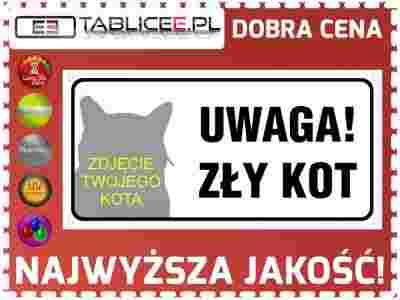 TABLICA GROŹNY UWAGA KOT Aluminiowa 30/15cm