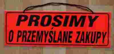 Przedmiotem tej aukcji jest tabliczka informacyjna "PROSIMY O PRZEMYŚLANE ZAKUPY"!